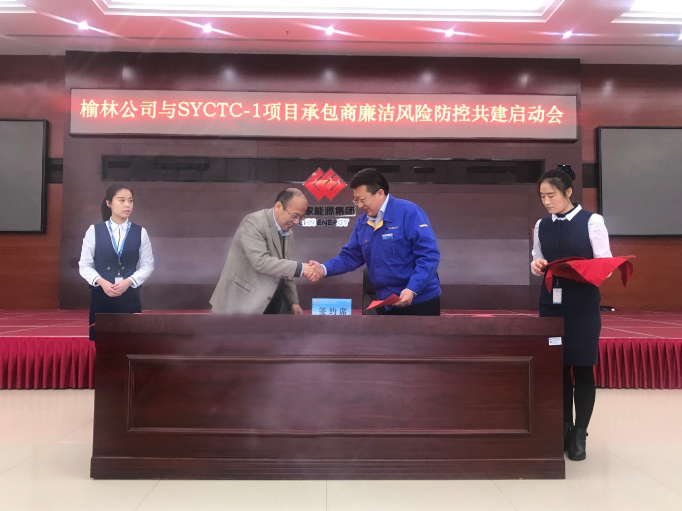11月30日,神華榆林能源化工有限公司與SYCTC-1(循環(huán)經(jīng)濟(jì)煤炭綜合利用一階段)項(xiàng)目承包商廉潔風(fēng)險(xiǎn)防控共建活動啟動會在榆林市榆神工業(yè)區(qū)召開。公司副總經(jīng)理李明華作為14家參建單位代表之一,就共建內(nèi)容進(jìn)行簽約并作表態(tài)發(fā)言。
