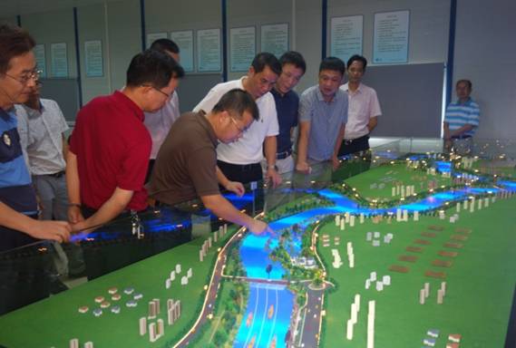 伍培進一行首先深入施工現場,認真查看了三夾橋、防洪工程現場施工情況,充分肯定了目前工程建設取得的成績,并對現場安全文明施工及宣傳設施布置情況給予了稱贊。隨后,一來到項目部駐地,在工程沙盤前進行觀摩,詳細了解了工程概況、施工進度、年度計劃、節點工期等方面內容,并在會議室聽取了項目經理就項目施工情況、階段性建設成果及本年度施工計劃為主要內容的專題匯報。